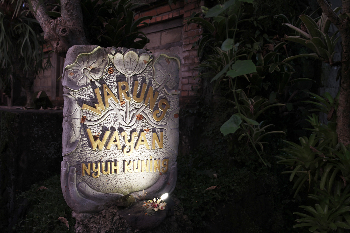 Onder de rook van UbudDeze link opent in een nieuw tabblad, grenzend aan het welbekende Monkey Forest, ligt Nyuh Kuning. Een klein dorpje dat – zo weet onze taxichauffeur te vertellen – Gele Kokosnoot betekent in het Balinees. En die naam is niet zomaar uit de lucht gegrepen, de ‘hoofdstraat’ van Nyuh Kuning wordt omzoomd door palmbomen met gele kokosnoten. De reden dat we voor Nyuh Kuning als bestemming kozen, is de good old Lonely PlanetDeze link opent in een nieuw tabblad. Onze eisen? Een fijne slaapplaats, maar niet in het drukke centrum van Ubud. Op booking.com zagen we door de bomen het bos – of moeten we zeggen, Monkey Forest – niet meer. En zo tipte de Lonely Planet Swasti Eco CottagesDeze link opent in een nieuw tabblad, net buiten Ubud. In de vier dagen die we in Nyuh Kuning doorbrachten, verzamelden we een aantal favoriete adresjes, waar we vrijwel dagelijks aanschoven.